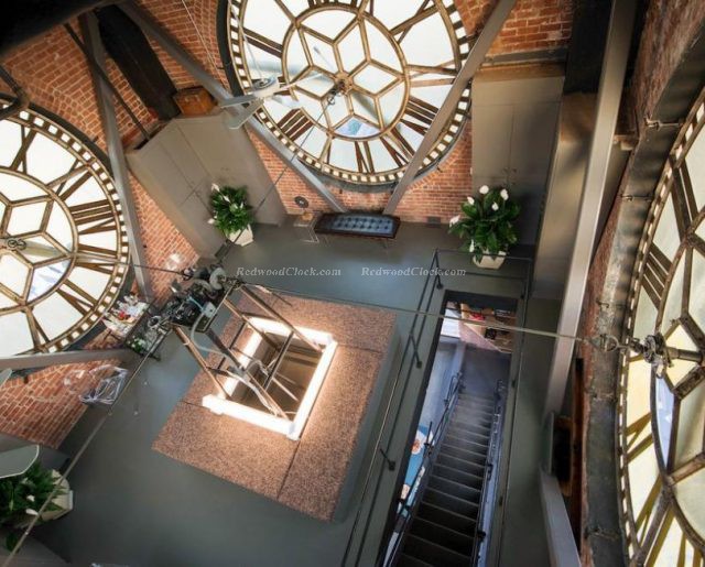 It has since been remodeled into a unique and modern penthouse. The two-bedroom, two-bath, 3,000-square-foot space spans four floors, and includes a master suite, multiple living areas, and the unique clock room.